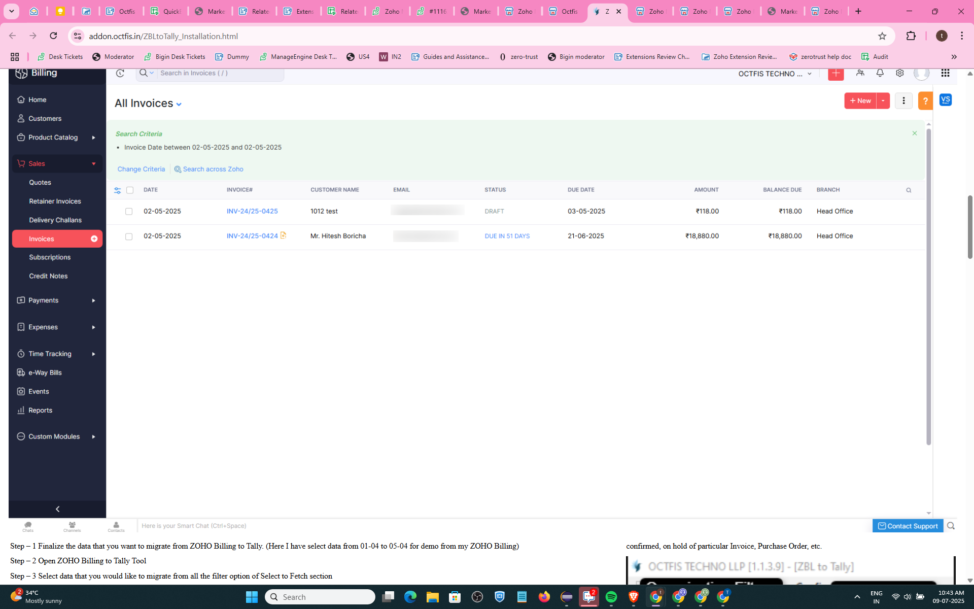 migrate from ZOHO Billing to Tally. (Here I