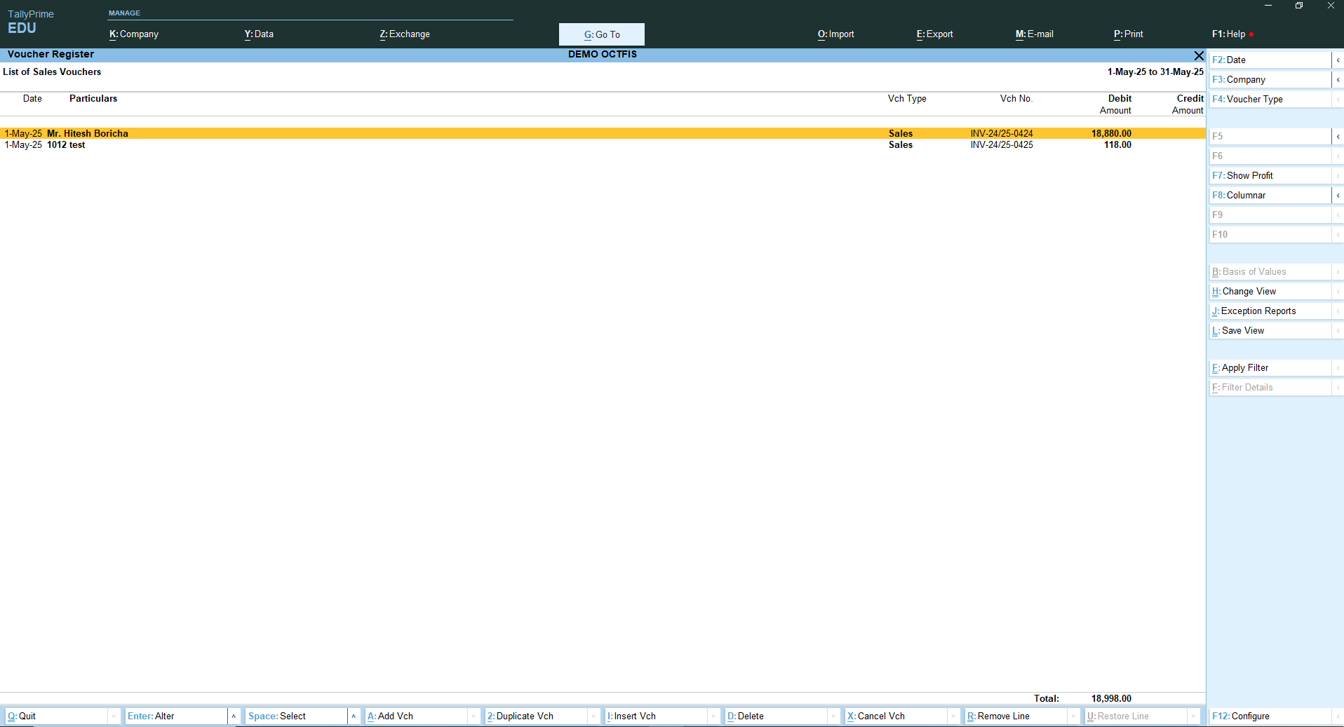 - Open Account Info -> Voucher Types -> Alter